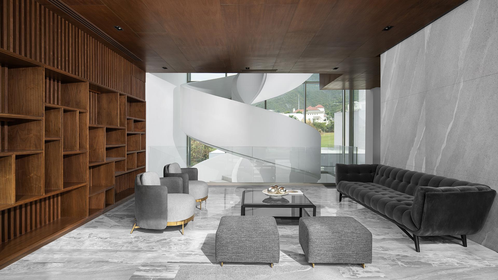 Le projet devait développer la structure de façon linéaire pour que toutes les pièces donnent non seulement sur le parcours de golf, mais aussi sur les montagnes d'alentour. Autrement dit, une structure en mesure de faire sentir les clients au cœur de la nature. Pour remplir les critères esthétiques du projet, le bureau Bolivar A. a choisi la collection Q-Stone by Provenza en couleur Grey naturel du module Opus, pour jouer avec les couleurs chaudes et froides, ainsi que pour donner une image complètement naturelle à la structure. Les carreaux de la collection Q-Stone ont été posés dans deux zones du complexe, et la façade a été recouverte sur environ 1 208 m2 pour donner un effet quartzite au profil accidenté. Le format 30x60 cm a été utilisé pour carreler la terrasse et la piscine, et la version mosaïque habille les murs des toilettes. L'inspiration géologique de l'imitation quartzite de la collection Q-Stone a été un élément clé pour la victoire du club Herradura au concours Ceramics of Italy Tile Competition 2020 dans la catégorie résidentielle.