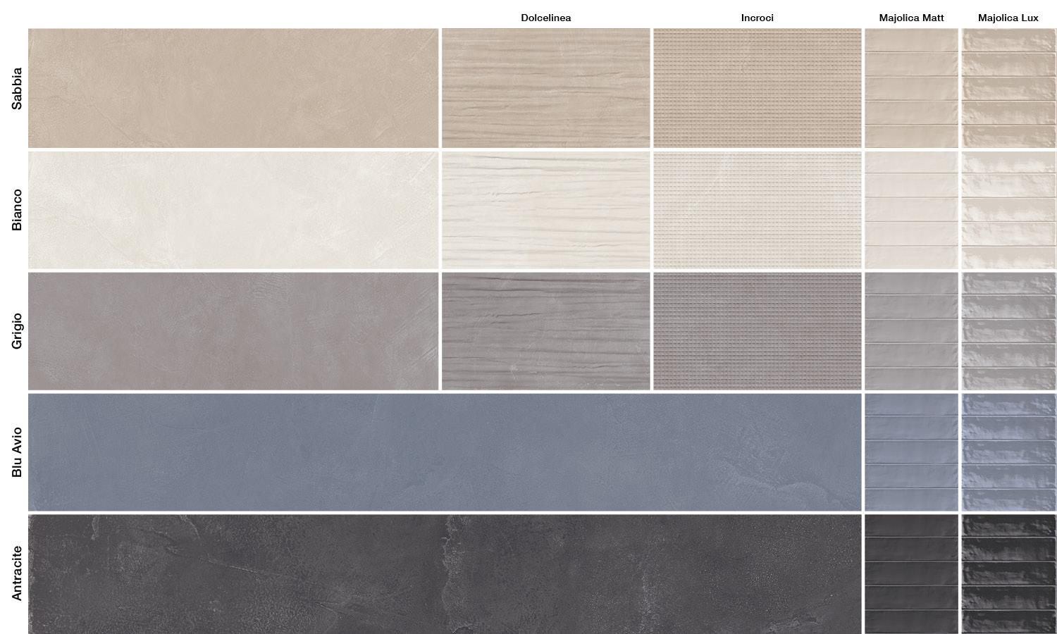 L'union de matières variées, mais parfaitement coordonnables, aboutit à la création d'une collection unique et contemporaine : trois résines aux usages divers, un format brick et une large gamme de décors.