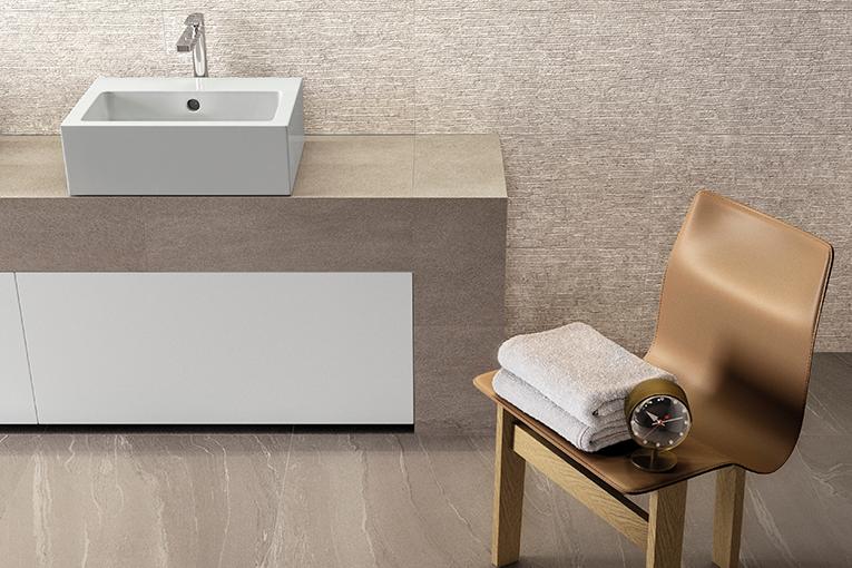 Grès Cérame Ergon Stone Talk Pierre Salle De Bain Taupe Minimal,sand Rullata,taupe Martellata Image Galerie | Emilceramica