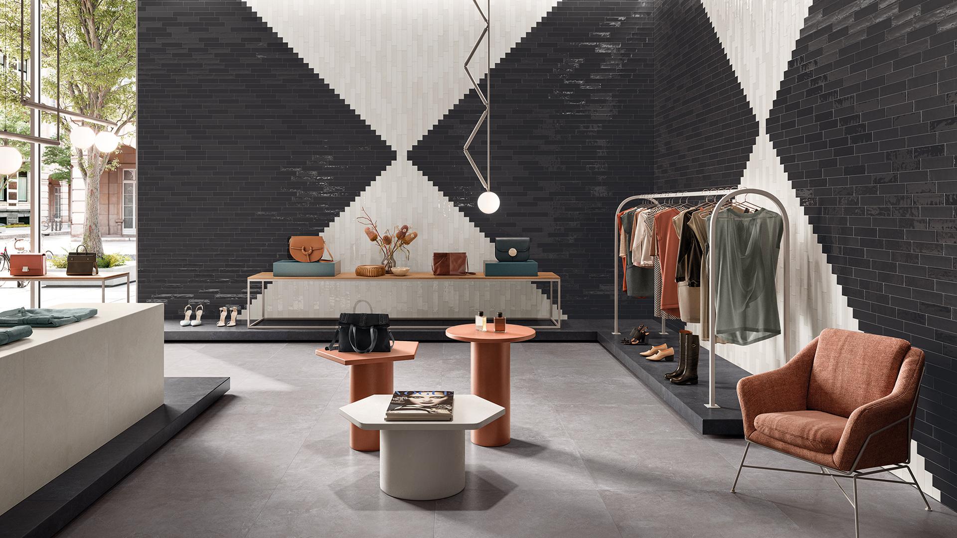 Le grès cérame est un matériau extrêmement polyvalent qui permet d’explorer des solutions décoratives nouvelles et conformes aux tendances actuelles. À cet égard, les carreaux créant une illusion d’optique constituent un choix design dans un style moderne parfait tout en transmettant une sensation de dynamisme et en remplissant les espaces. Ces revêtements sont conçus pour jouer avec la perception visuelle : ils illuminent les espaces et créent des effets scéniques particuliers. Les motifs géométriques restent une des variantes stylistiques les plus en vogue pour les carreaux à effet d’optique qui peuvent être utilisés aussi bien comme carrelages et revêtement mural. Une autre suggestion très intéressante est le carrelage à effet tridimensionnel, conçu pour apporter de la profondeur et du mouvement. Il est principalement utilisé pour mettre en valeur des parois ou pour attirer le regard sur un élément spécifique dans une cuisine ou une salle de bains. En réalité, les carreaux créant une illusion d’optique offrent une vaste gamme de possibilités et d’idées créatives pour personnaliser et apporter de la singularité dans les pièces.