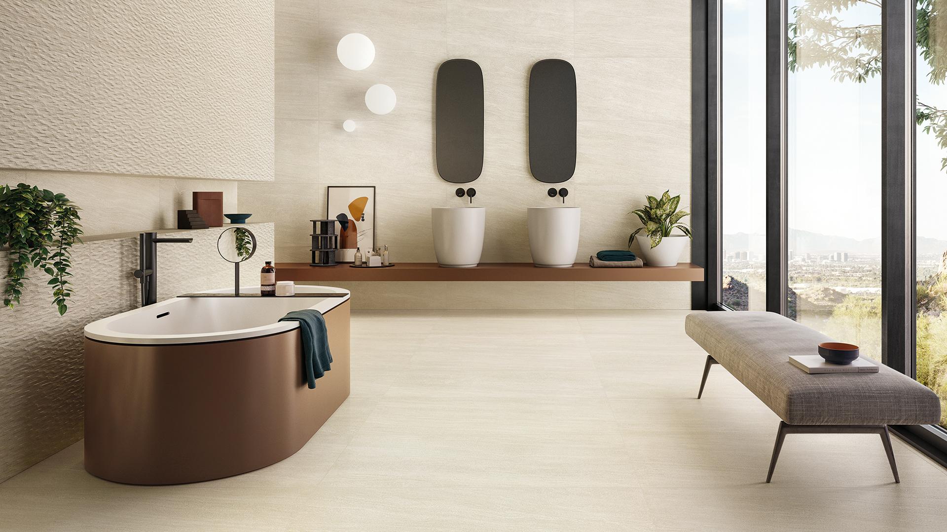 Le point fort d'un revêtement de mur en carrelage en grès beige est sa polyvalence absolue. Cette couleur s'adapte à la température froide et chaude des sous-tons des autres éléments de mobilier, est très facile à associer à des teintes neutres ou plus vives et elle s'intègre aisément dans des projets de design de tout style. Grâce aux caractéristiques techniques élevées et au processus rigoureux de recherche et de fabrication, le carrelage en grès beige fait revivre sur la surface la perception authentique des matières et finitions : nœuds du bois le plus noble, veines du marbre le plus fastueux, sédimentation de la pierre et solidité du béton, il ne reste que l'embarras du choix.
