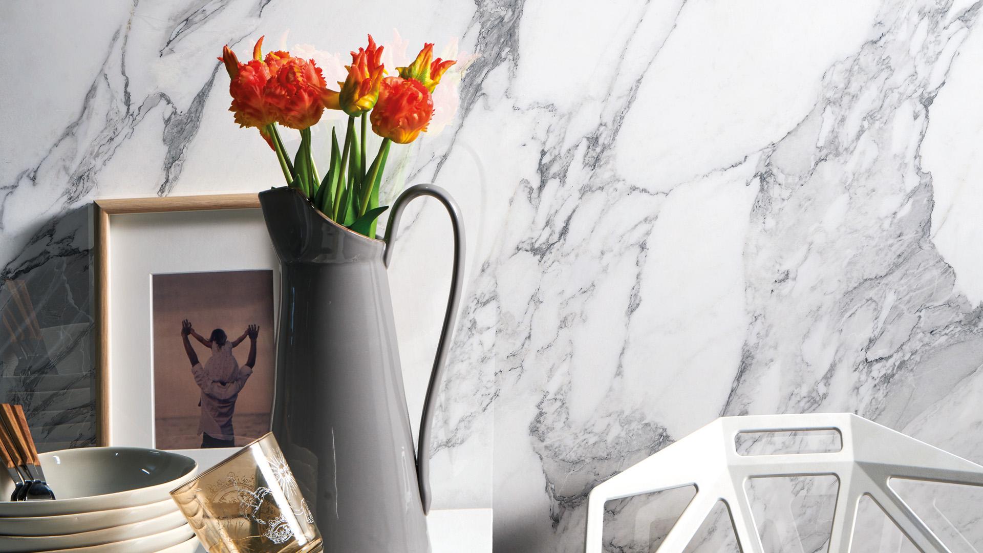 Comment nettoyer le grès cérame brillant ? Avec les bonnes mesures, c'est facile et pratique. Pour conserver intactes la beauté et la brillance des carreaux, mieux vaut commencer par les entretenir dès la pose : le nettoyage de fin de chantier, plus précisément, est une étape essentielle pour éliminer les résidus de pose et la saleté. Le grès effet brillant créant une surface brillante et non poreuse sur laquelle la poussière et les résidus se voient plus facilement, il faudra donc prendre soin de les enlever avant le nettoyage. Après le nettoyage, deux ennemis menacent les surfaces brillantes : voici donc comment éliminer les auréoles et les marques sur le grès cérame. Il suffit d'utiliser des détergents neutres dilués le plus possible, en ayant soin d'éviter les produits avec des encaustiques ou des substances cireuses. Éponges et chiffons abrasifs sont eux aussi à proscrire si l'on veut conserver l'éclat des sols en grès. Maintenant que nous voilà rassurés sur la facilité d'entretien, nous pouvons choisir les meilleurs carreaux imitation marbre brillant. Pour les grands projets, Level Marmi offre une palette inégalée. Plus de quarante carreaux pour explorer le potentiel évocateur et architectural du matériau le plus noble et le plus recherché. Chaque veinage, chaque reflet, chaque stratification est mise en valeur par les détails et les proportions : les dalles (160x320, épaisseur 6,5 mm rectifiée, et 162x324, épaisseur 12 mm non rectifiée) élèvent chaque carreau au rang de chef-d'œuvre.