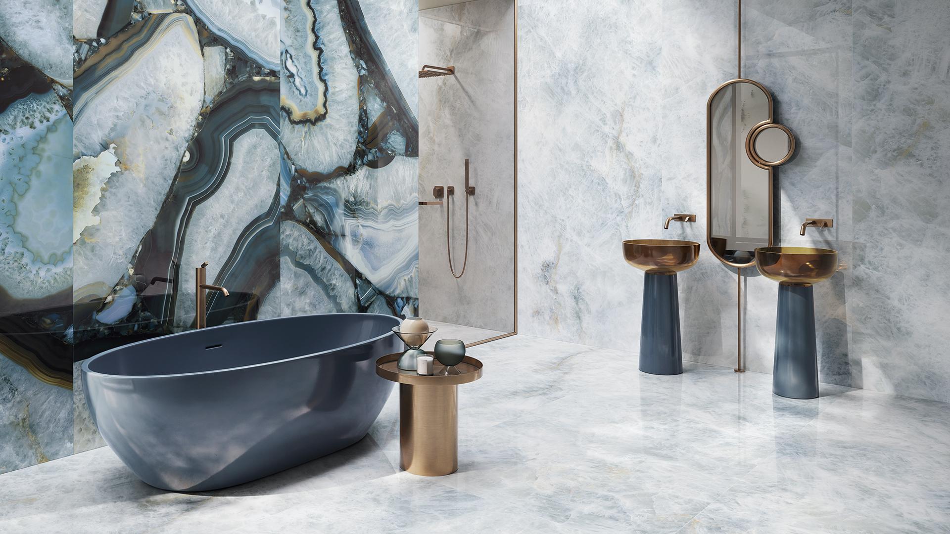 Non seulement les revêtements de sol, mais aussi ceux des murs sont fondamentaux pour définir l'esprit d'une demeure de luxe. En raison de sa polyvalence, le grès cérame peut servir à formuler des myriades de solutions conceptuelles.