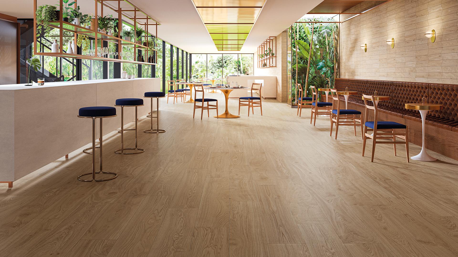 Les carreaux en grès cérame pour le restaurant subliment le cachet des lieux tout en mettant à disposition les performances techniques les plus sélectives. Lors de la conception des revêtements de sol d'un restaurant, les questions décisives touchent justement aux performances du matériau. Les surfaces en grès résistent aux chocs, à l'usure et au piétinement intense ; elles sont naturellement faciles à nettoyer, non absorbantes et antidérapantes. Sécurité, hygiène et durabilité : les ingrédients fondamentaux des meilleurs carreaux pour les restaurants et les commerces.