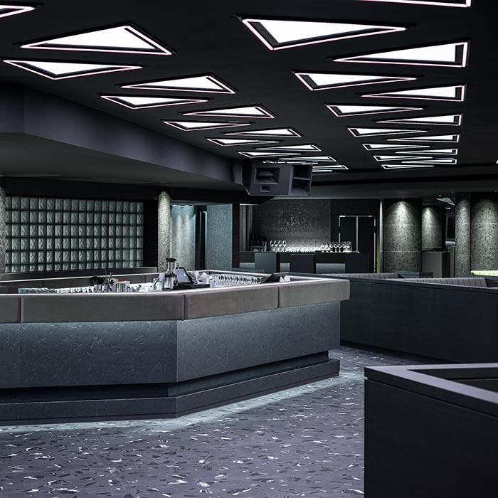 La collection Medley a été utilisée pour recouvrir le sol et l’ensemble de la boîte de nuit Le format choisi est 60x120 en teinte Dark Grey Pop et Dark Grey Rock. La collection Medley était l’alliée parfaite pour obtenir les performances maximales de ce projet grâce à sa liberté de conception combinée à son efficacité technique.