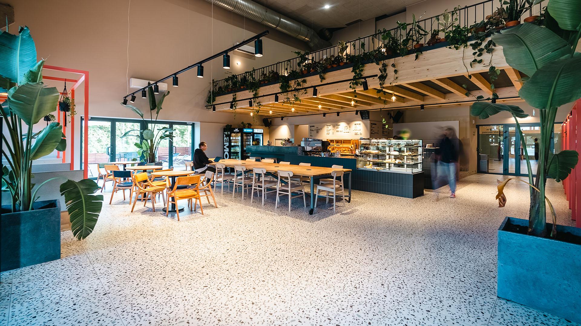 Le carrelage couvre les 1 300 m² de l’entrée et de l’espace bar de la nouvelle salle.